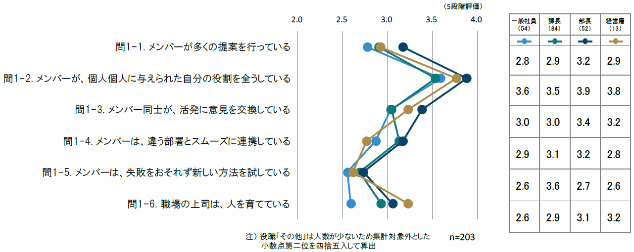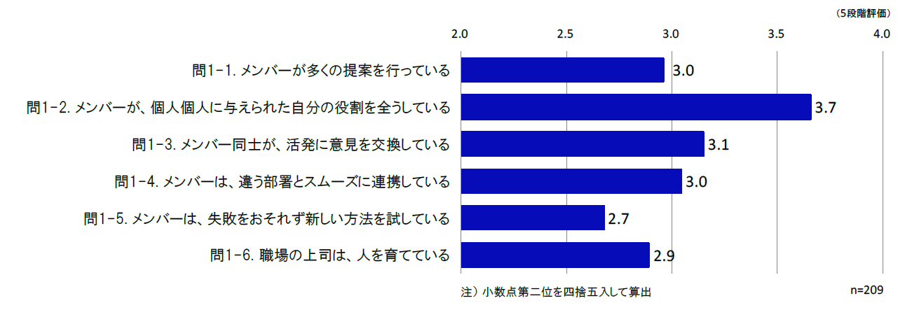 | 問1-5 メンバーは失敗を恐れずあたしい方法を試している | 0.22 | 1.71 | 0.09 |