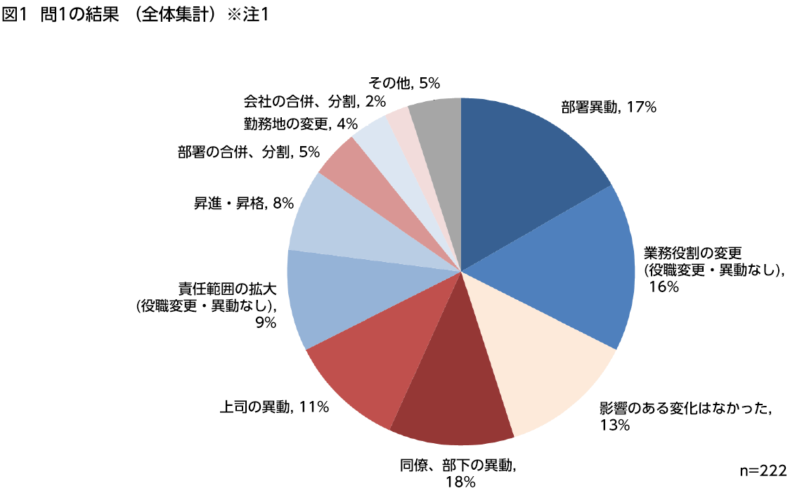 <選択肢>昇進・昇格/降格/部署異動/責任範囲の拡大(役職変更・異動なし)/業務役割の変更