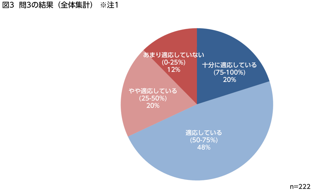 <選択肢>十分に適応している(75~100%)/適応している(50~75%)/