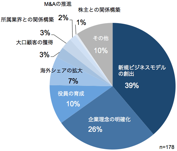 取締役に期待することは、「新規ビジネスモデルの創出」 が39%と最も大きな割合を占めた。