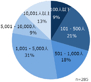 □~100人 □101人~500人 □501人~1,000人 □1,000人~5,000人 □5,000人~10,000人 □10,001人~