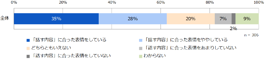 □「話す内容」に合った表情をあまりしていない □「話す内容」に合った表情をしていない □わからない