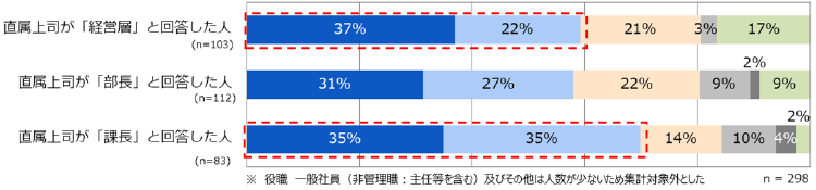 - 一方、「課長」は、部下に対してのポジティブ回答が一番低い。