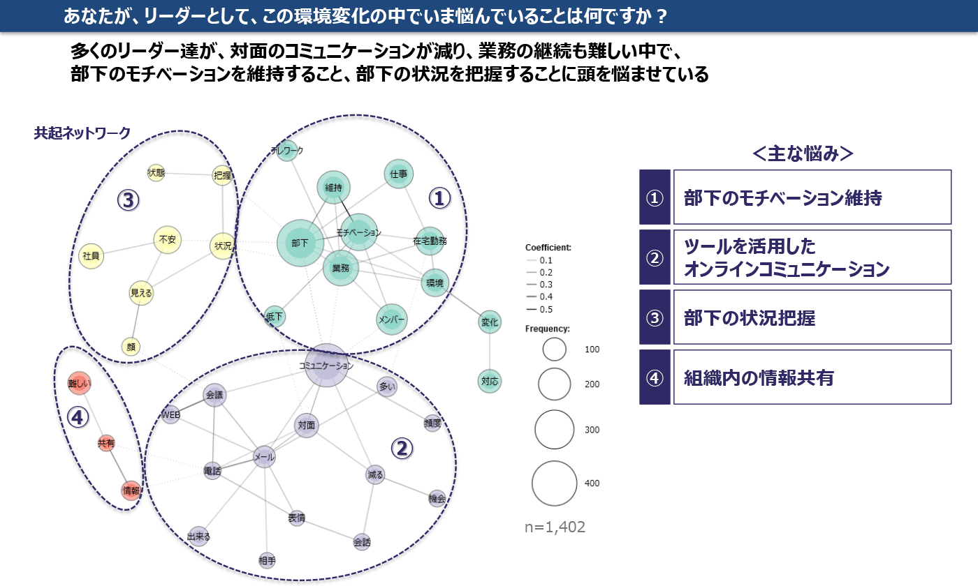 - リーダーが難しさを感じているのは、部下のモチベーションの維持や部下の状況の把握。