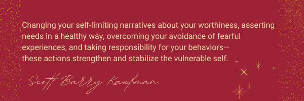 自分の価値について自ら制限を加えている物語を変え、健全な方法でニーズを主張し、恐ろしい経験を回避しようとすることを克服し、自分の行動に責任を持つ。これらの行動は、脆弱な自己を強化し、安定させる。