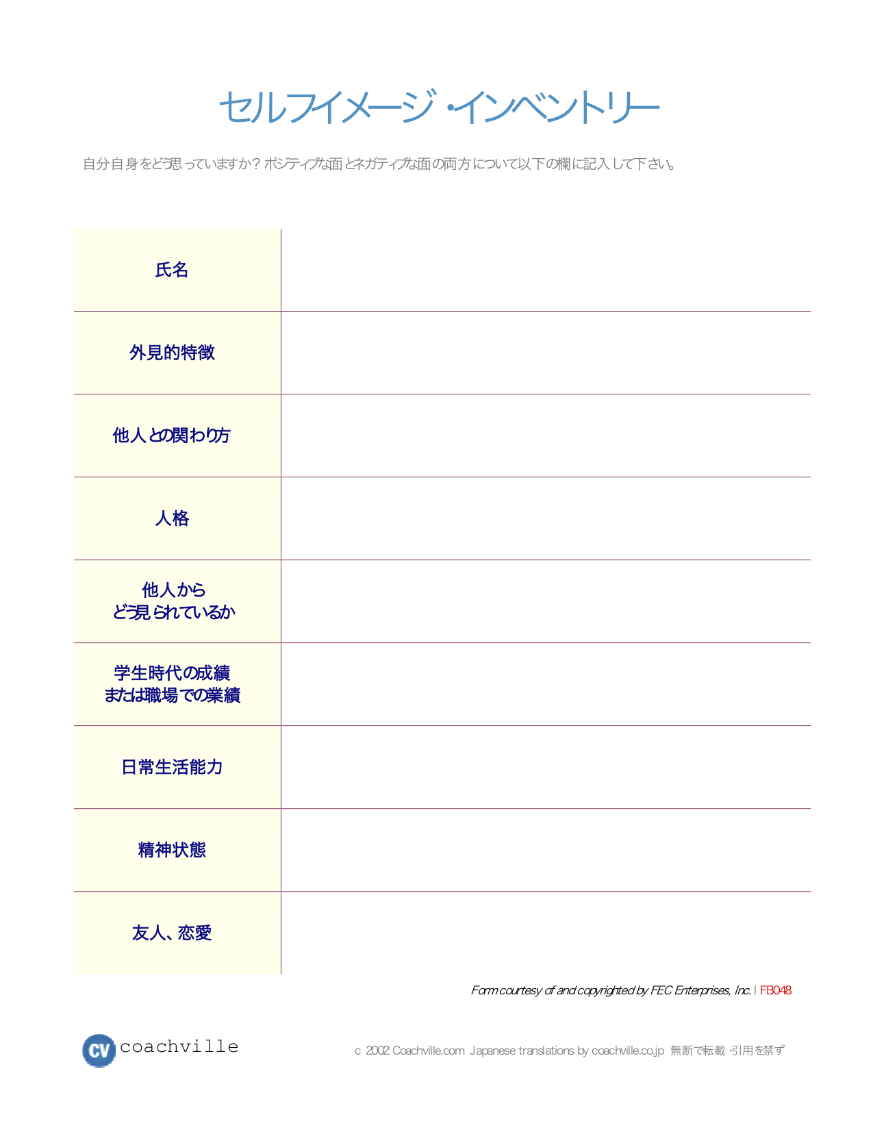 セルフイメージ・インベントリー(Test.jp 内「コーチヴィル」より)