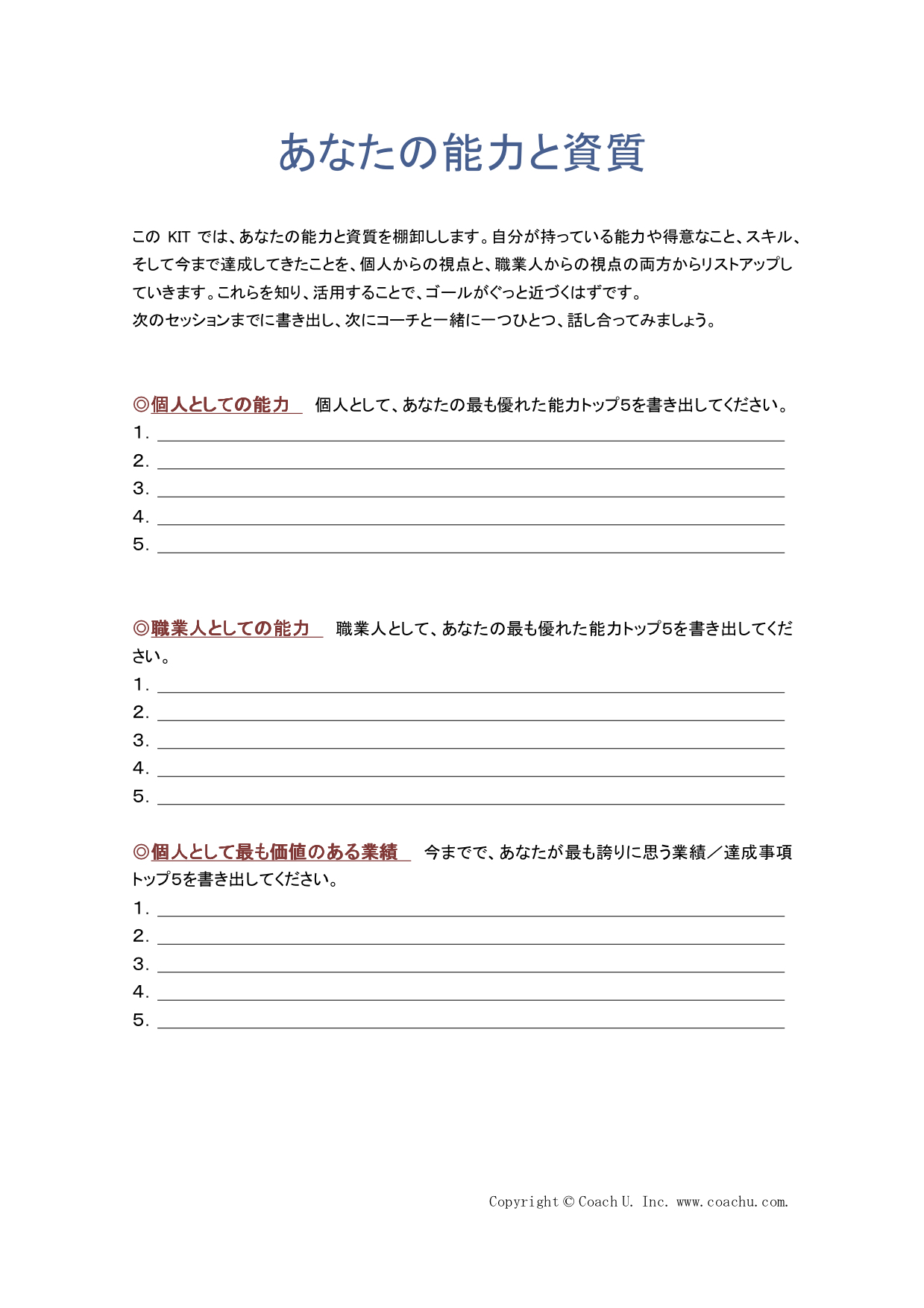 あなたの能力と資質(Test.jp 内「コーチヴィル」より)