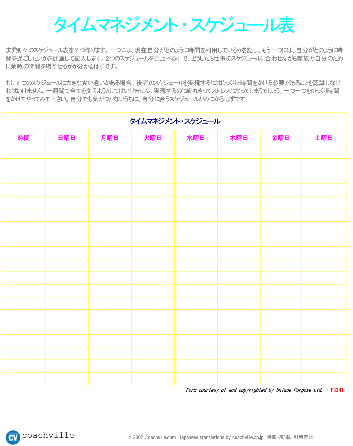 タイムマネジメント・スケジュール表(Test.jp 内「コーチヴィル」より)