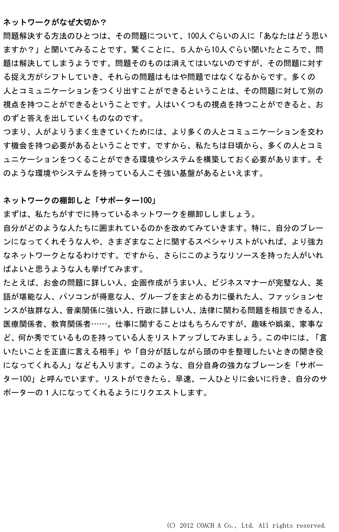 基盤を支える人的ネットワークを築く(Test.jp 内「コーチヴィル」より)