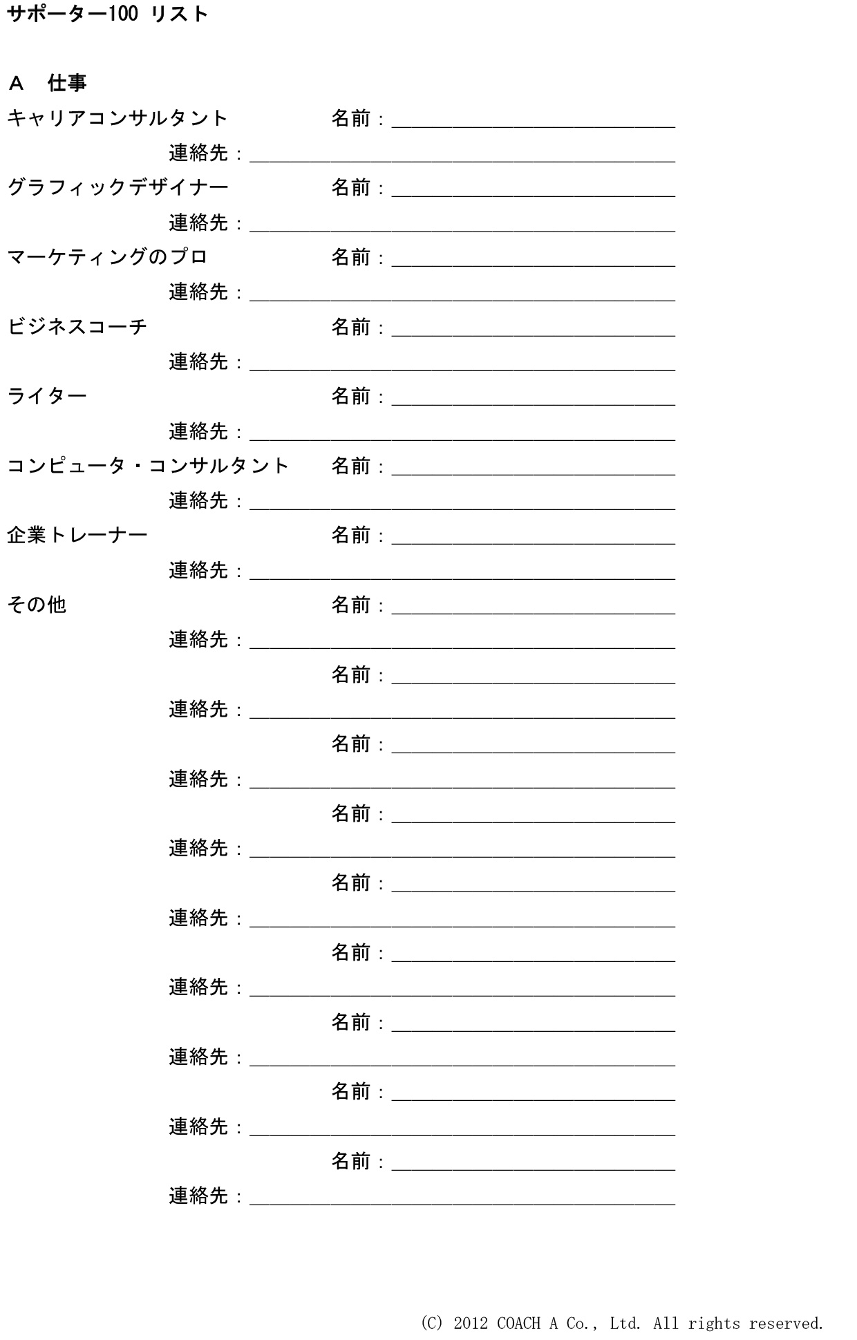 このリストがあれば、自分のネットワークが見える化され、サポーターになって欲しい人への声がけや実際の相談などの行動も自然と促されます。