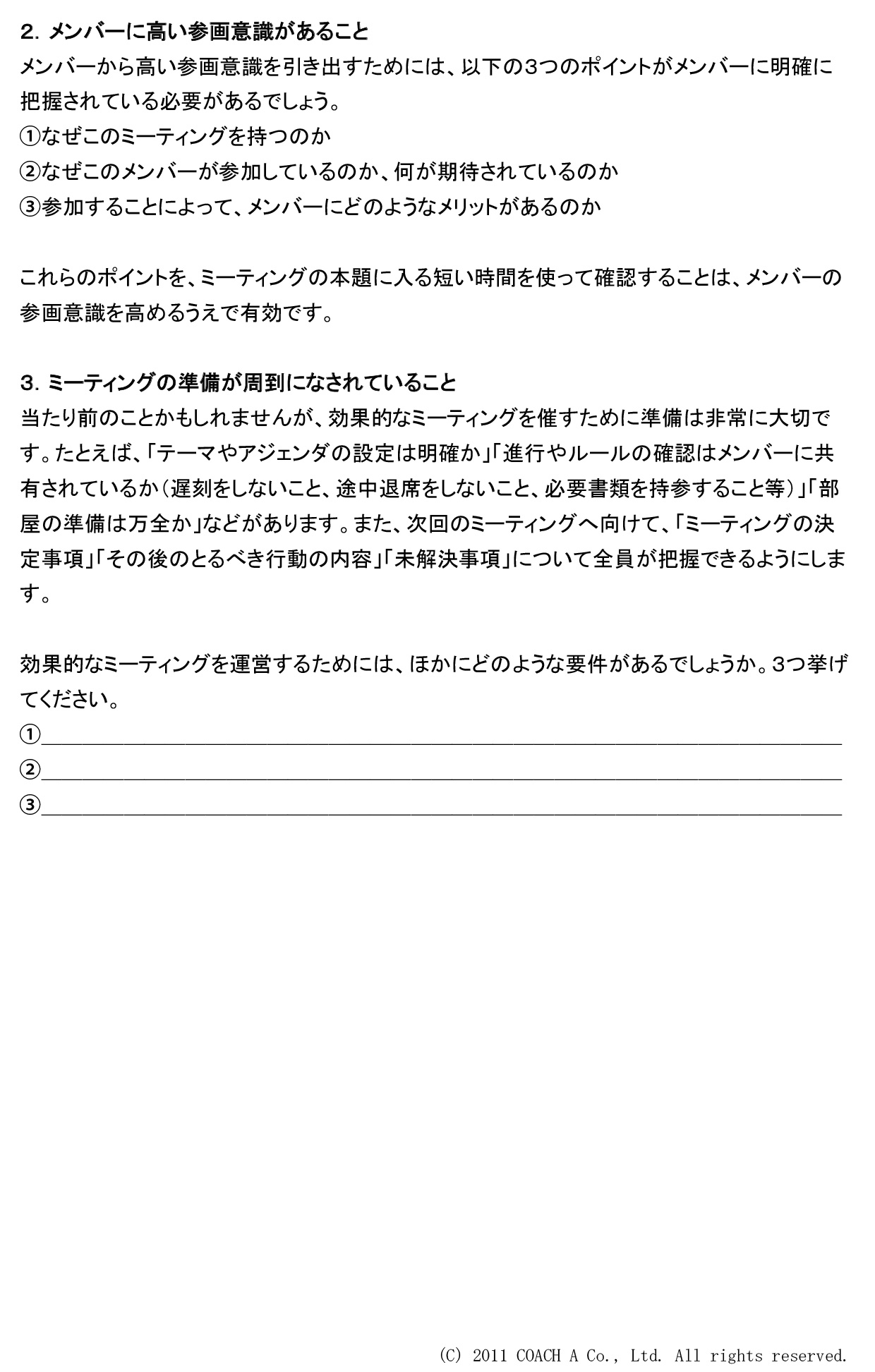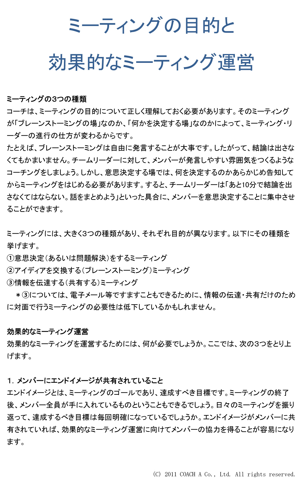 ミーティングの目的と効果的なミーティング運営(Test.jp 内「コーチヴィル」より)