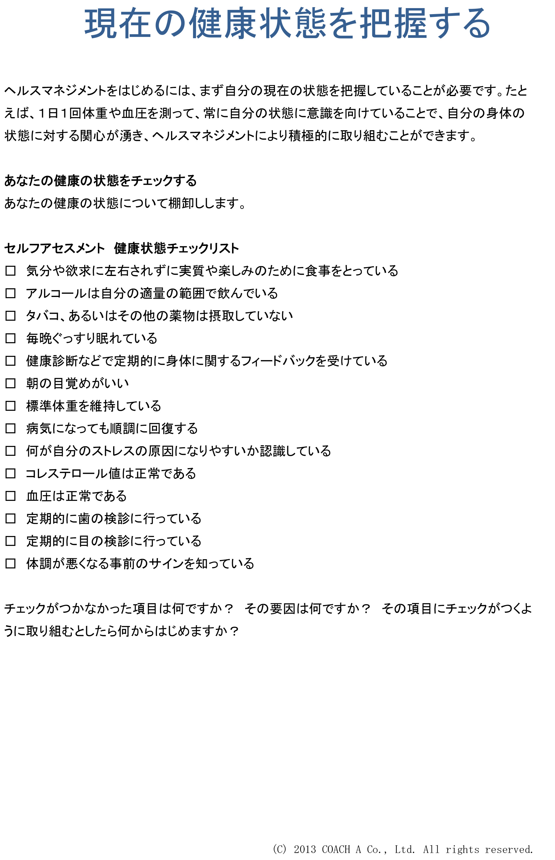現在の健康状態を把握する(Test.jp 内「コーチヴィル」より)