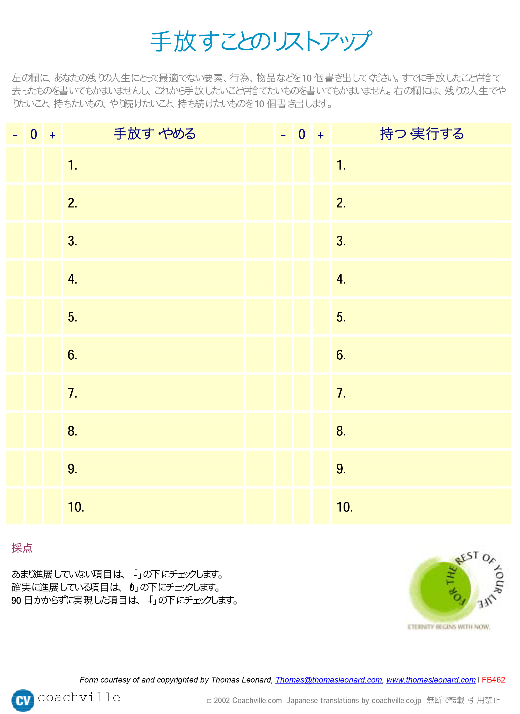 手放すことのリストアップ(Test.jp 内「コーチヴィル」より)