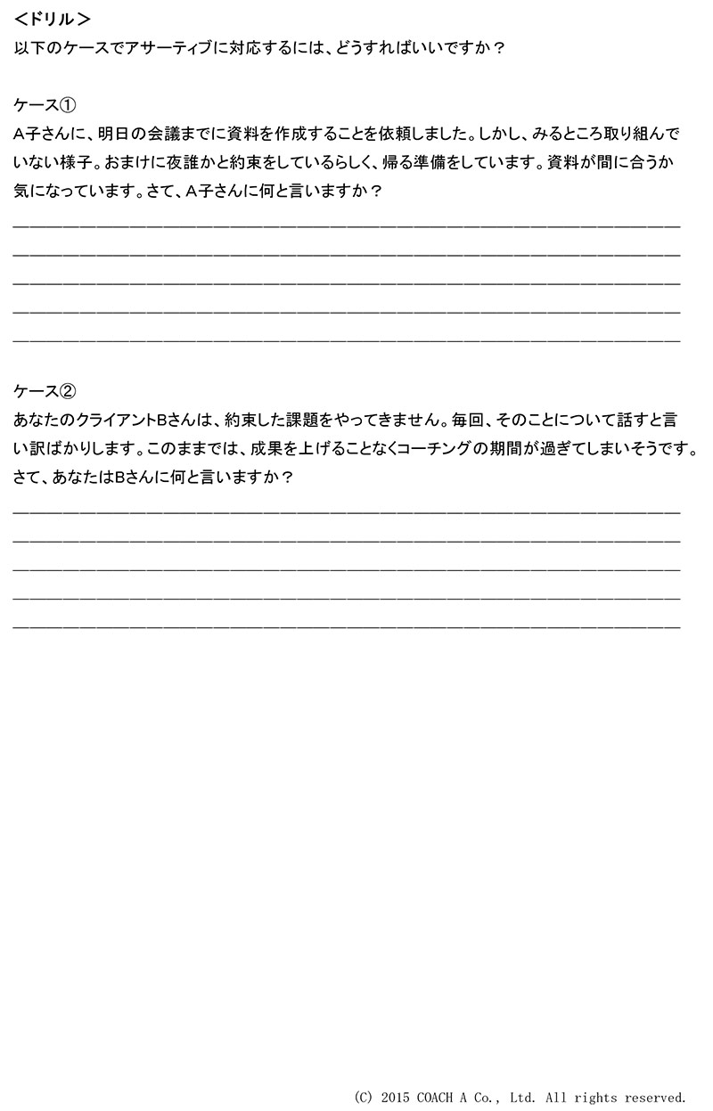 ドリルとして、あなたのアサーティブ度が試される事例を2つ紹介しています。