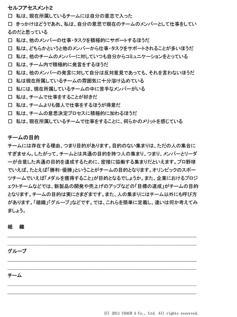あなたのチームづくり力アップ、そしてあなたのチームのパフォーマンスアップにぜひご活用ください。