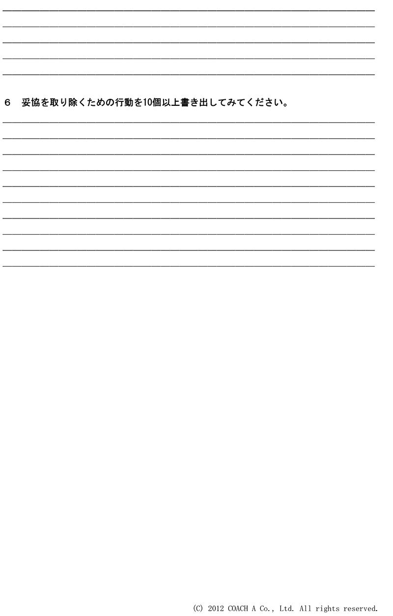 こちらは、日々の生活の中で自分が行っている「妥協」を改めて書き出し、振り返るためのツールです。