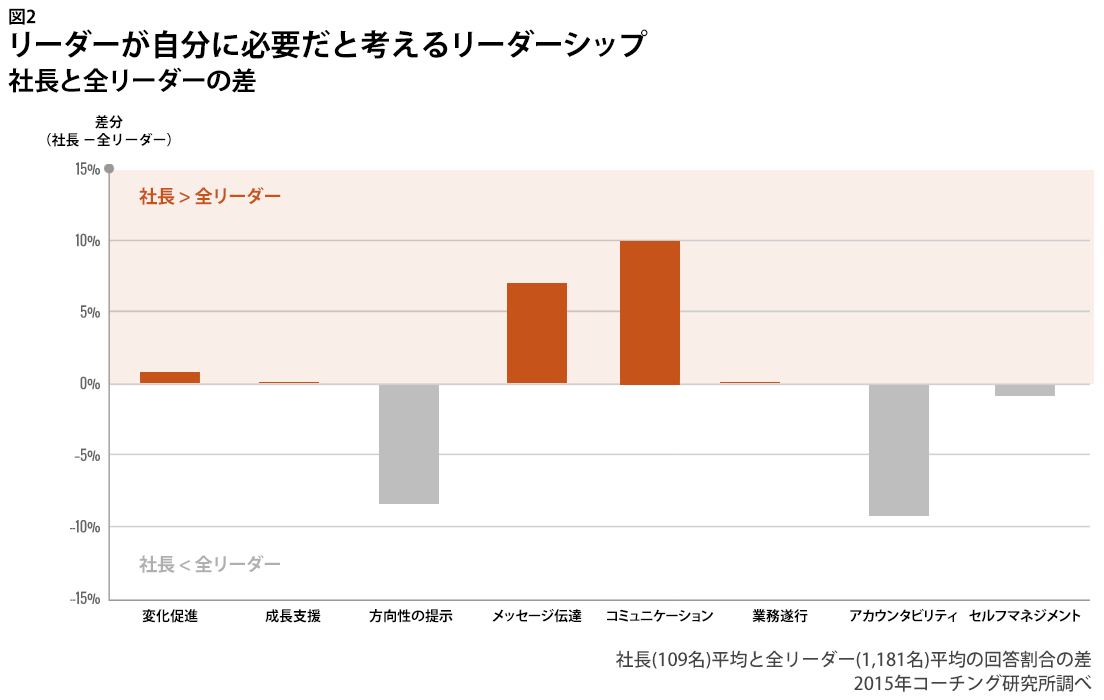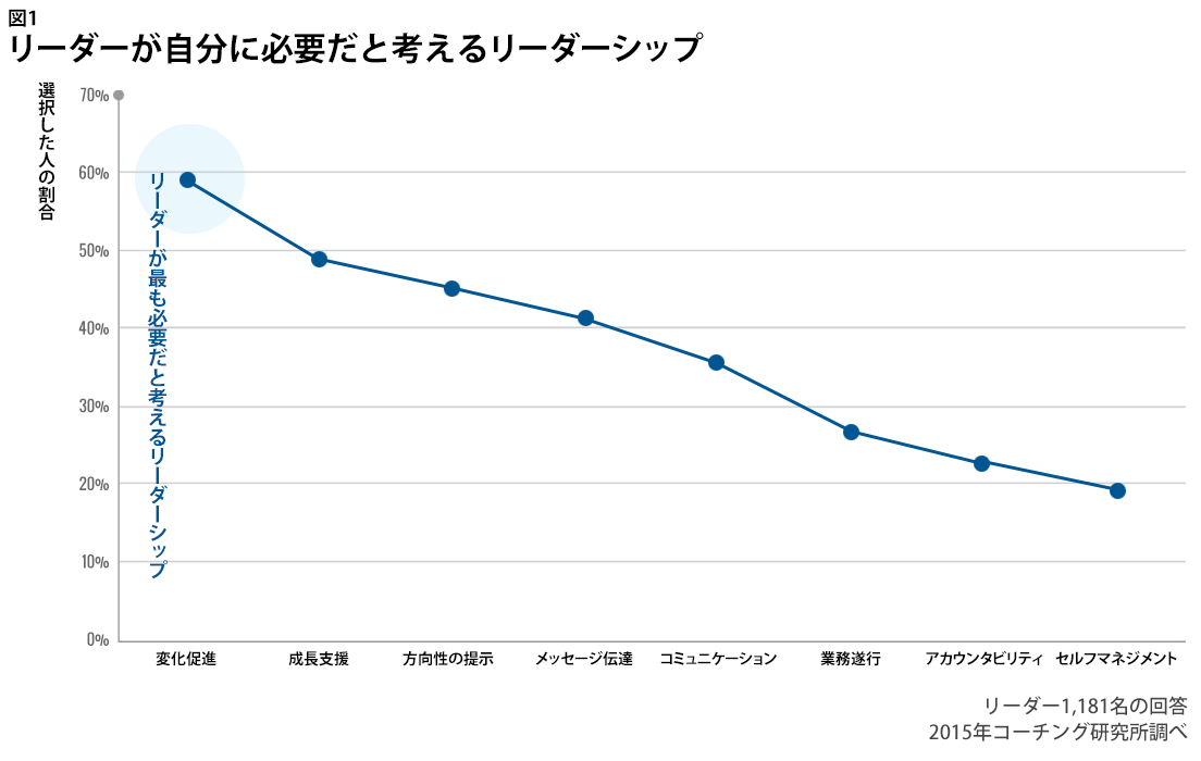 リーダーが最も多く選んだリーダーシップは、「変化促進」(広い視野を持ち、必要な変化を起こすこと)でした。