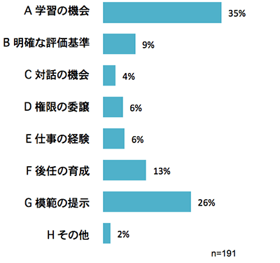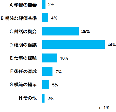 Q. あなたがこれまでに直属の部下のリーダーシップを開発するために取り組んできた中で、もっともリーダーシップを発揮させることにつながったと思う方法は何ですか?