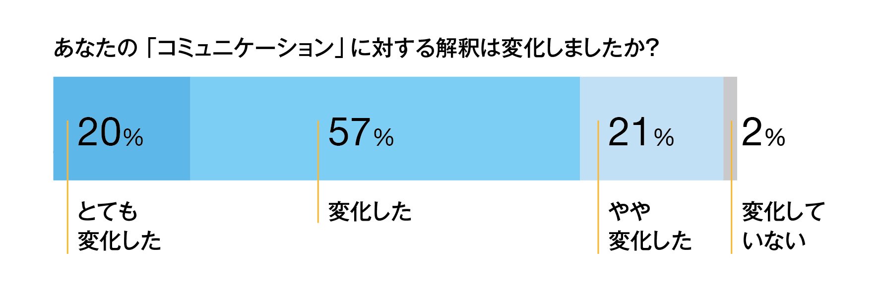 ワークショップ参加者の事後アンケートでは、大多数の参加者が「コミュニケーション」に対する解釈が変化したと回答しています。