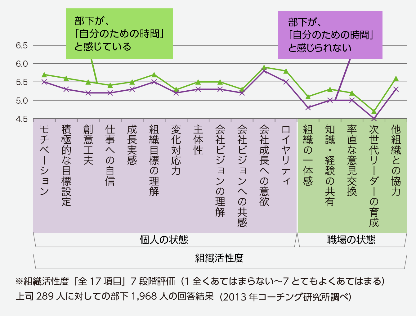 【図1】「部下のために話す時間をとっている」上司と「それ以外の上司」の組織活性度の比較
