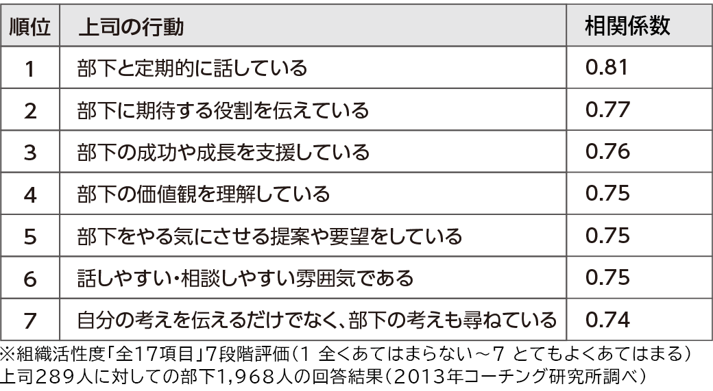 【表1】部下が「自分のために時間をとってくれている」と感じる上司の行動
